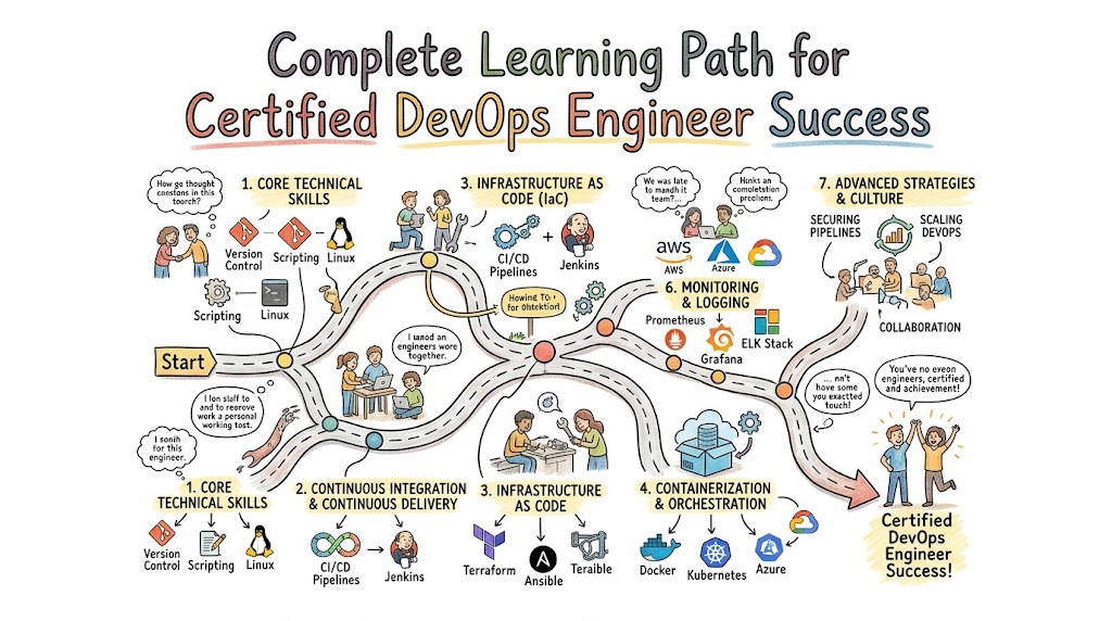 The generalist path focused on the end-to-end delivery lifecycle. It is the most popular choice for those aiming for “Engineering Manager” or “Head of DevOps” roles.